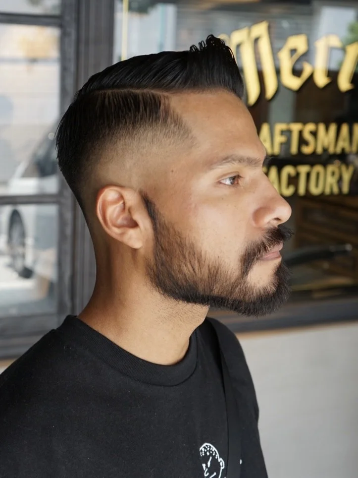A. サイドやバックを徐々に短く刈り上げ、頭頂部にかけて長さをつなげる理容技術です。スッキリ×メリハリのあるシルエットが特徴で、最近のメンズスタイルで人気です。