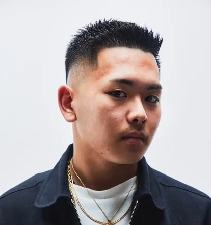 Low Fade with Feathered Up-Bang