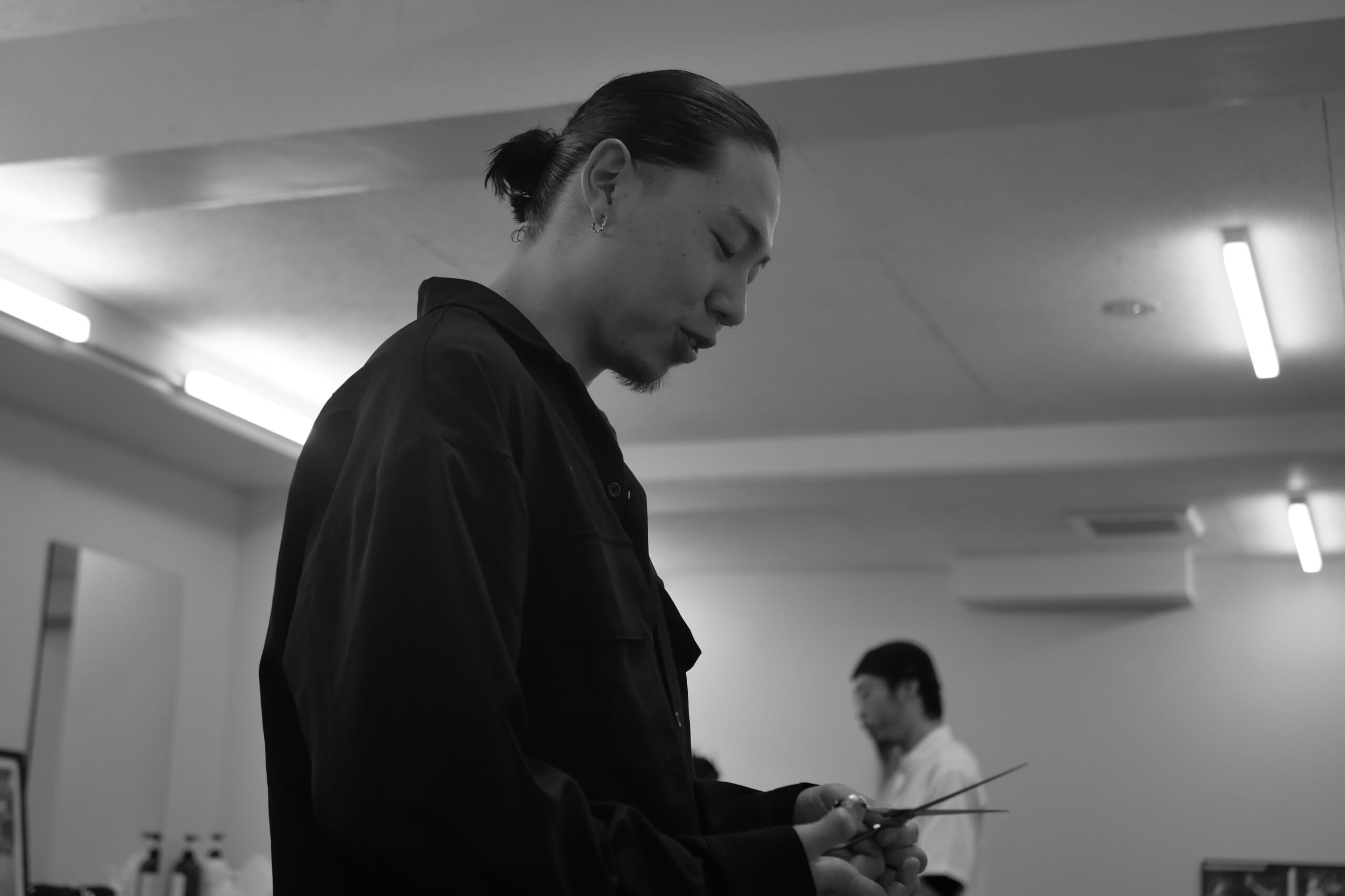 サロン内は、白を基調としたセレクトショップかのようなお洒落なサロン内となっており、緊張感が少し漂う東京屈指のバーバーの名に相応しい内装となっている。1号店は東京の理容室では名店中の名店であり、遠方からは数多くファンの方々がご来店されている。ikeziriは2021年10月オープンして3周年を迎え、新たなフェーズに向けて、オーナー清水さんの期待のサロンである。 お店の簡単な紹介がすんだところで早速、田貝氏のインタビューを進めていくとしよう。
